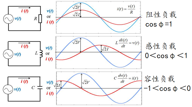 Dalam beban induktif tulen, IL semasa tertinggal voltan sebanyak 90 °, dan kuasa yang dirujuk sebagai kuasa reaktif induktif. Sebaliknya, dalam beban kapasitif tulen, Ic semasa adalah di hadapan voltan sebanyak 90 °, dan kuasa dikenali sebagai kuasa reaktif kapasitif.