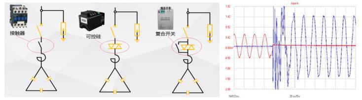 Disebabkan oleh hakikat bahawa penukaran kapasitor selari pada masa-masa awal dicapai melalui contactors, yang mempunyai masa tindak balas pada skala peringkat kedua, kelemahan yang boleh membawa maut adalah arus inrush besar semasa menukar. Dalam kes-kes yang teruk, ia boleh mencapai 50-100 kali arus undian kapasitor pampasan, mengakibatkan cahaya arka yang ketara dan menyebabkan kerosakan kepada kapasitor dan penghubung. Berdasarkan operasi sebenar beban di tempat, alternatif kepada penghubung seperti suis segerak, suis hibrid, dan suis thyristor secara beransur-ansur muncul di pasaran. Alternatif ini telah bertambah baik pada menukar pada voltan sifar dan mengganggu pada arus sifar, dengan ketara mengurangkan kerosakan peralatan yang disebabkan oleh menukar arus inrush.