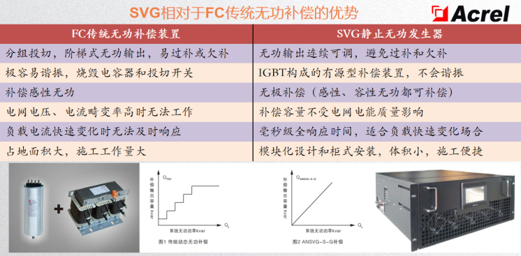 Terdapat banyak jenis peralatan pampasan, dan pilihannya umumnya berdasarkan peralatan operasi sebenar di tapak. Setiap peranti pampasan mempunyai kelebihan dan keburukan tersendiri. Dalam artikel ini, kami secara ringkas akan memperkenalkan dua produk yang paling banyak digunakan dalam sistem pengedaran 0.4KV di pasaran: pampasan kapasitor penukaran (pampasan FC) dan penjana var statik (pampasan SVG).