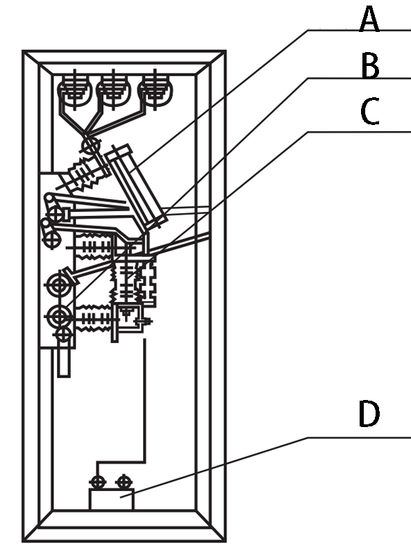 2.1. 3 interrupter vakum adalah dipercayai interlocked dengan pisau pengasingan, dan pisau pengasingan dan pisau hentakan dihubungkan antara satu sama lain dan interlocked dengan pintu kabinet, dan partition penebat juga bersambung dengan pintu kabinet.